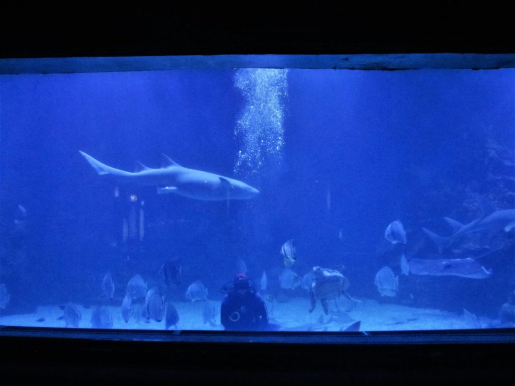 الاكواريوم الكبير (جراند اكواريوم). جراند اكواريوم هو مكان يجمع بين عدة اشياء ترفيهية في نفس الوقت. مابين كافيه و مطعم و احواض الاسماك و حديقة حيوانات و بيت الزواحف. اعداد كبيرة من احواض السمك التي تحتوي على انواع متنوعة من الاسماك ما بين ثعابين المورينا و اسماك القرش المختلفة و سمكة الشيطان و السلاحف البحرية و غيرها الكثير. ستستمتعون بمشاهدة انواع مختلفة من الزواحف و التماسيح و الثعابين و القرود و النعام بالاضافة الى هيكل عظمي لحوت ضخم. زوروا هذا المكان حتي يتسنى لكم الاستمتاع بجماله و مايحتويه من اسماك و حيوانات و زواحف.