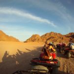 السفاري. تبدأ هذه الرحلة الممتعة اولا بالسيارات الجيب التي تذهب بنا الى عمق الصحراء ثم بعد ذلك بالموتسيكلات الرباعية العجلات. اثناء الرحلة بالطبع سنشاهد السراب الصحراوي الشهير و نغوص في عالم الرمال اللامتناهي و لاتنسوا ايضا جولتنا على ظهر الجمل سفينة الصحراء اما بعد تناول العشاء فسنستمتع بالعروض الفنية المختلفة و منها رقصة التنورة و الرقص الشرقي الشهير. انه عالم من الخيال الموجود على ارض الواقع.