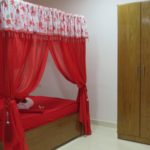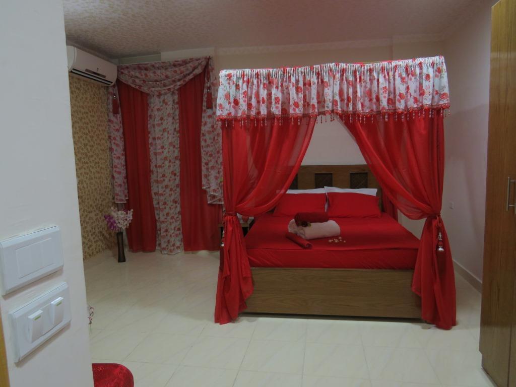 شقة حديثة التشطيب تماما بديكورات شرقية غرفة نوم.