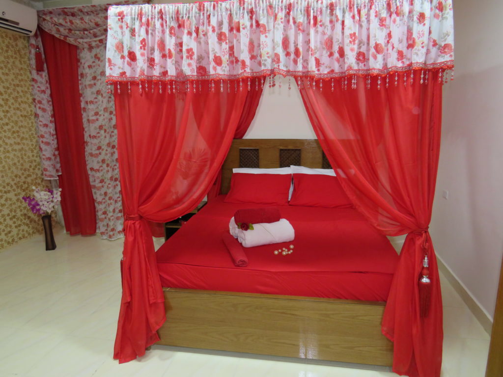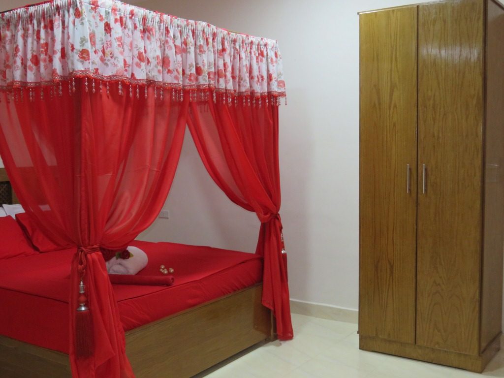 شقة حديثة التشطيب تماما بديكورات شرقية غرفة نوم.