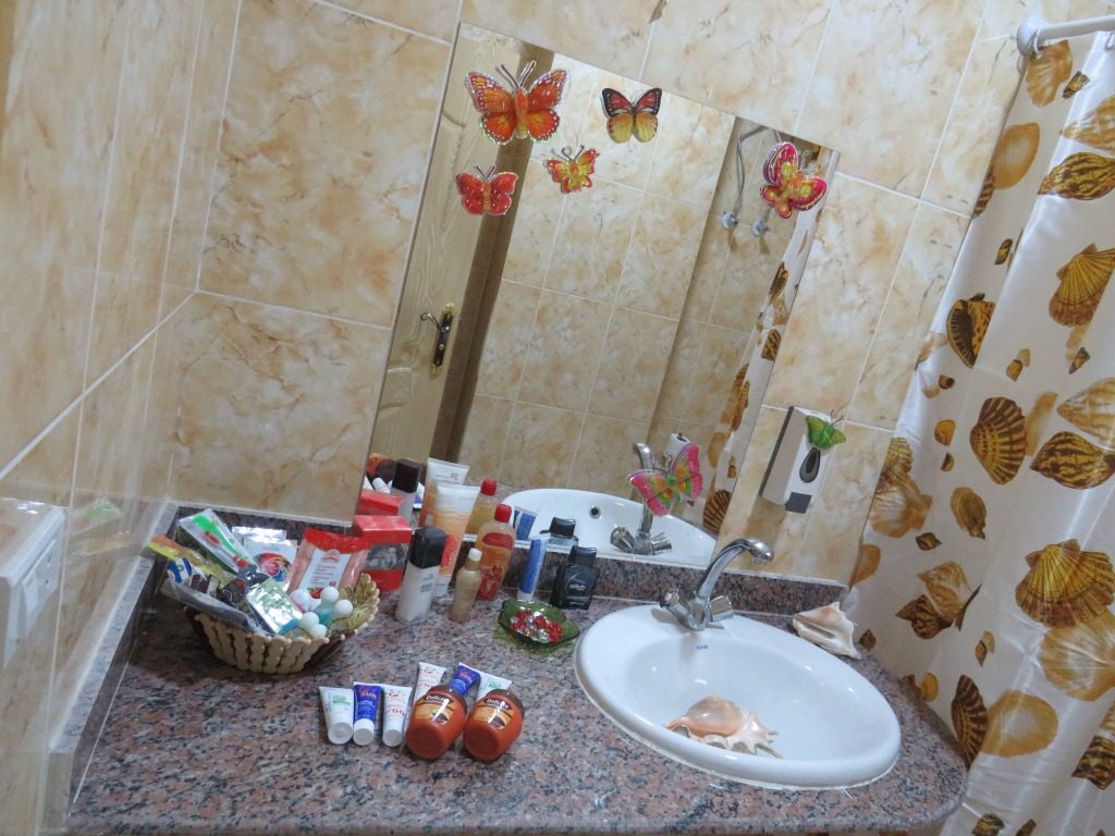لاجل راحة السادة الضيوف يوجد بالحمام كل ما قد يحتاجه النزيل سواء من فرشاة اسنان و معجون اسنان و غطاء رأس و عيدان تنظيف الاذن و مناديل مبللة و شامبو و جيل للشعر و بلسم للشعر و صابون و باشكير و خلافه .