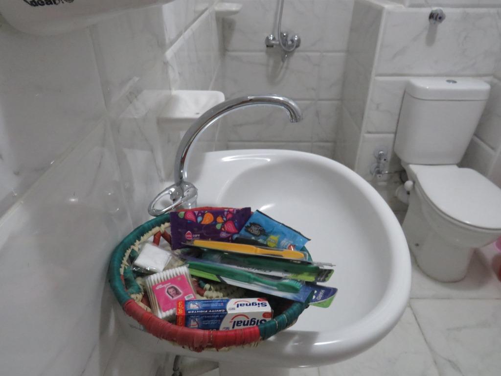 لاجل راحة السادة الضيوف يوجد بالحمام كل ما قد يحتاجه النزيل سواء من فرشاة اسنان و معجون اسنان و غطاء رأس و عيدان تنظيف الاذن و مناديل مبللة و شامبو و جيل للشعر و بلسم للشعر و صابون و باشكير و خلافه .