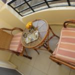 بلكونة مجهزة بما يحتاجه الفرد لقضاء احلى الاوقات