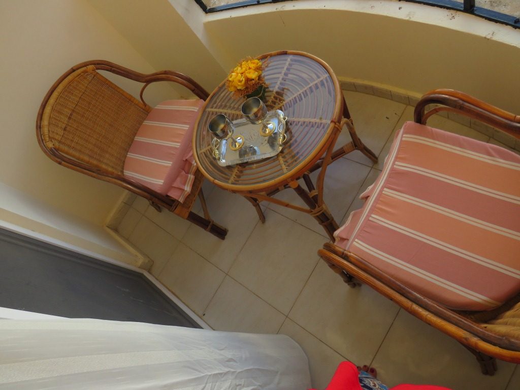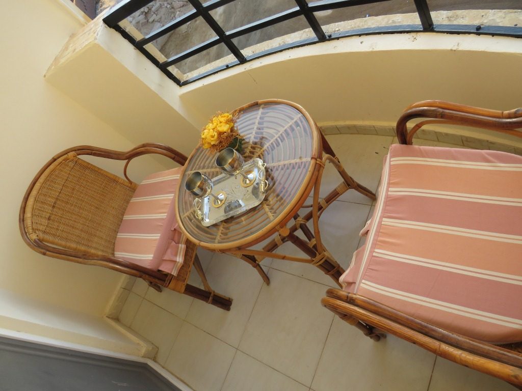 بلكونة مجهزة بما يحتاجه الفرد لقضاء احلى الاوقات